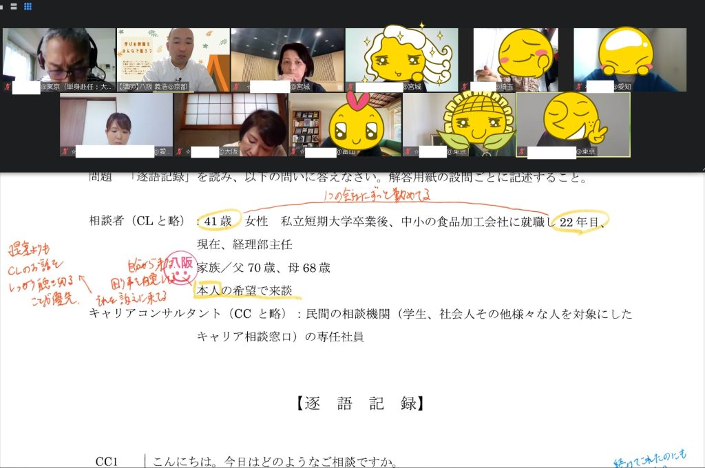 本日はありがとうございました!論述読み解き編ということでしたが、面接対策、ひいては日常の業務にも活かせるお話をしていただき、大変勉強になりました。コメントは少々辛口と感じましたが(笑)八阪先生の「キャリアコンサルタントの質を上げたい」という思いを感じ取れたように思いました。面接対策の方でもお世話になります。またよろしくお願い申し上げます。
