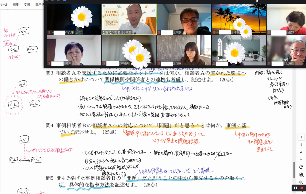 また、問3「必要なネットワーク」は良いアイディアが思い浮かばず苦労した記憶があるのですが、どのように考えれば相談者にとって有益な支援に繋がるのかが少し見えたような気がします。