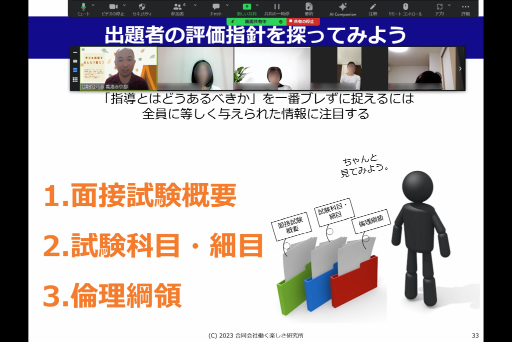 頭の中でどんなふうに面談を組み立てているのかなどをお見せしました。