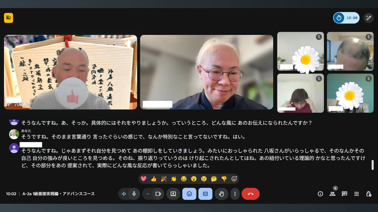 ・八阪先生から振り返りメールでいただいた「常に心の中で事例じゃない、CC自身を見るんだという声かけをする」を今後の実践に心にとめて面談していきたいと思います。本日は誠にありがとうございました。