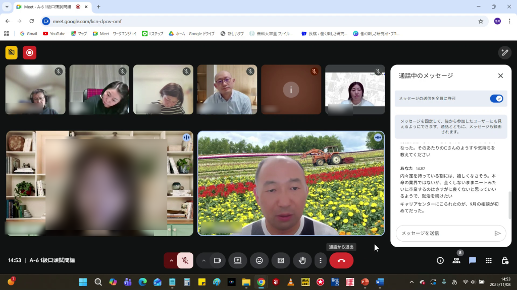 11月8日(土)1級キャリアコンサルティング技能検定対策講座(面接実践編・口頭試問編)の様子