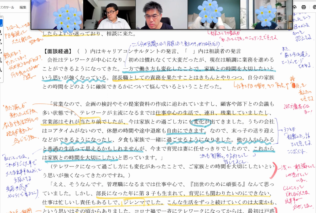 苦しんでいるのは事例相談者さんだけではなく、相談者さんも同じです。事例について深く考えることは、試験対策ということだけではなく、多角的な視点を養うための訓練なのだと思いました。そう思って取り組んでいきたいと思います。本日は、ありがとうございました。
