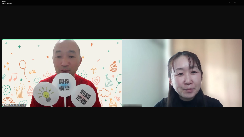 面接お手本編の参加は初めてでしたので、「CL役をやって良い」と書いたところで、(もっと慣れている方がやってくれるだろう!)と思っておりましたが、思いがけずCL役を打診され、私はZOOMに慣れていないのでちゃんと出来るのかドキドキして講座の時間を迎えました。