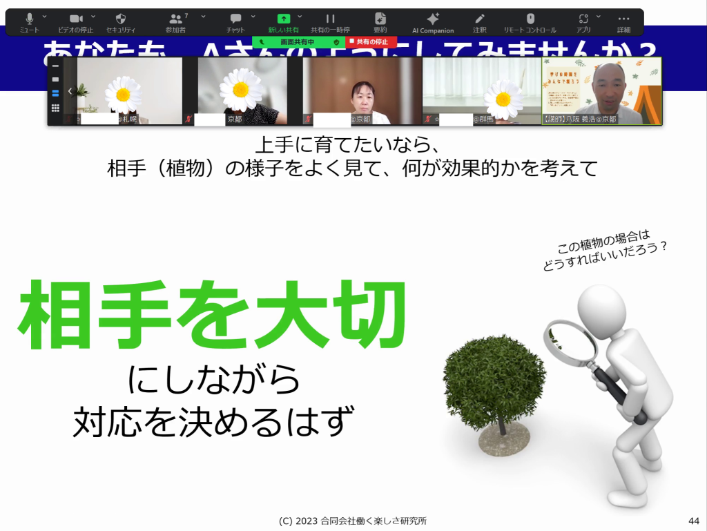 本日は丁寧な講義をありがとうございました。相談者第一、頭ではわかっているつもりでも、今日のお話を聴いて、自分出来てないな。という突かれてイタイところがたくさんありました。