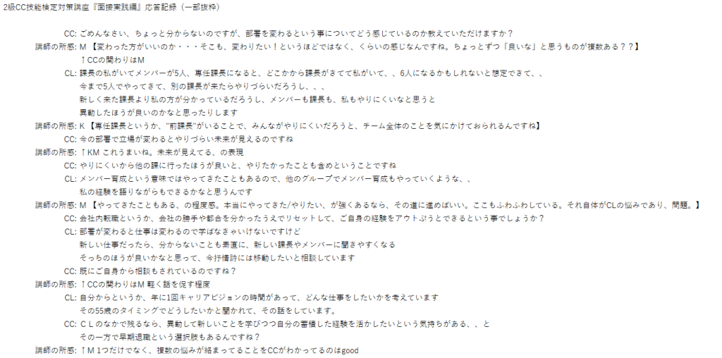 前回参加させていただいた実践編でのロープレ体験や、その後の自主練習会を通して、頭で理解したことを面談でやっているつもりになっていた自分自身に気づき、本当に情けなく自身の未熟さを痛感するばかりです。
