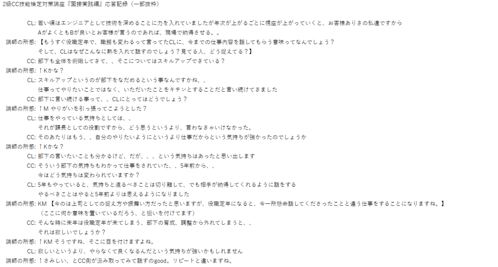 現状はまだ「相談者第一」を徹底できていませんが、無意識にやっている「相手を否定しない」で関係性を作ることや、意図してやったこととその効果は口頭試問で回答できるように努めます。今回も自分のクセが出てしまったので、今後も課題改善と長所強化に取り組みます。
