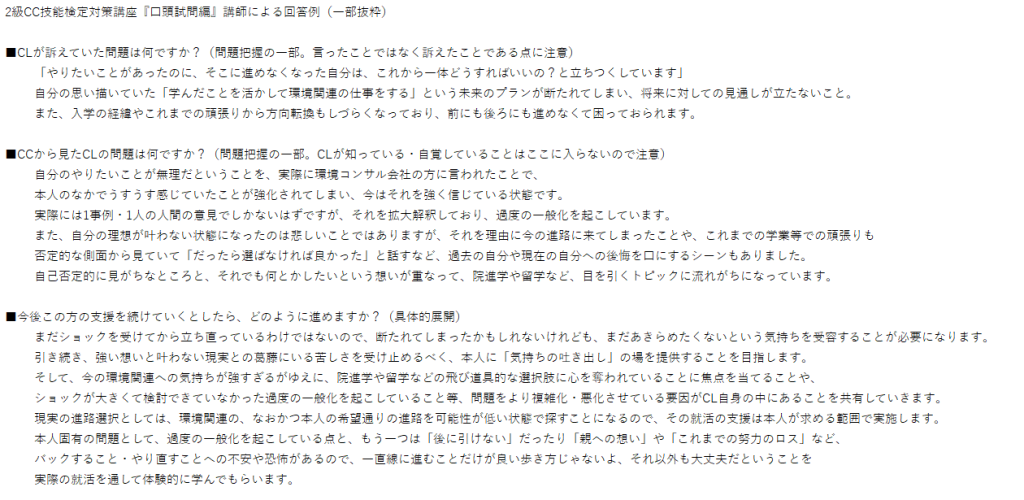後日いただいた逐語録では、まだまだ(自分の)CLの理解度や問題把握も弱く問題把握を先走る(問題把握が多い関わり)が見て取れますし、文字量的にもまだまだ核心につながる会話は少なく口頭試問も課題がありましたが、試験に関わらず対人支援の関係構築の重要性を体感し学べたことは本当に良かったと思います。