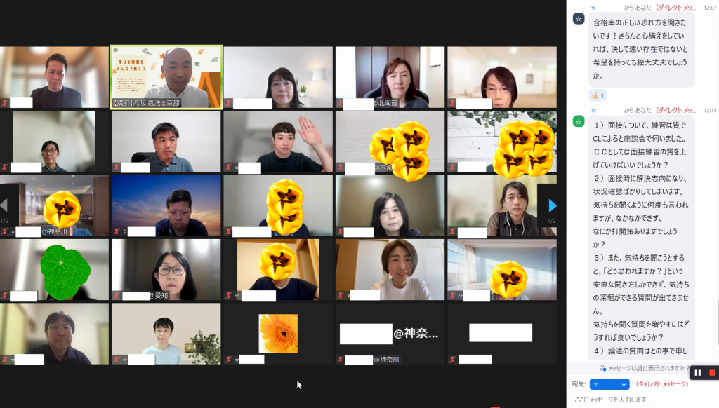 受検や取得時期は多少違うものの同じく向上を目指すキャリアコンサルタントとしては同志です。お互い頑張りましょう!本日に全ての参加者から学びと勇気とモチベーションをいただきました。ありがとうございました。
