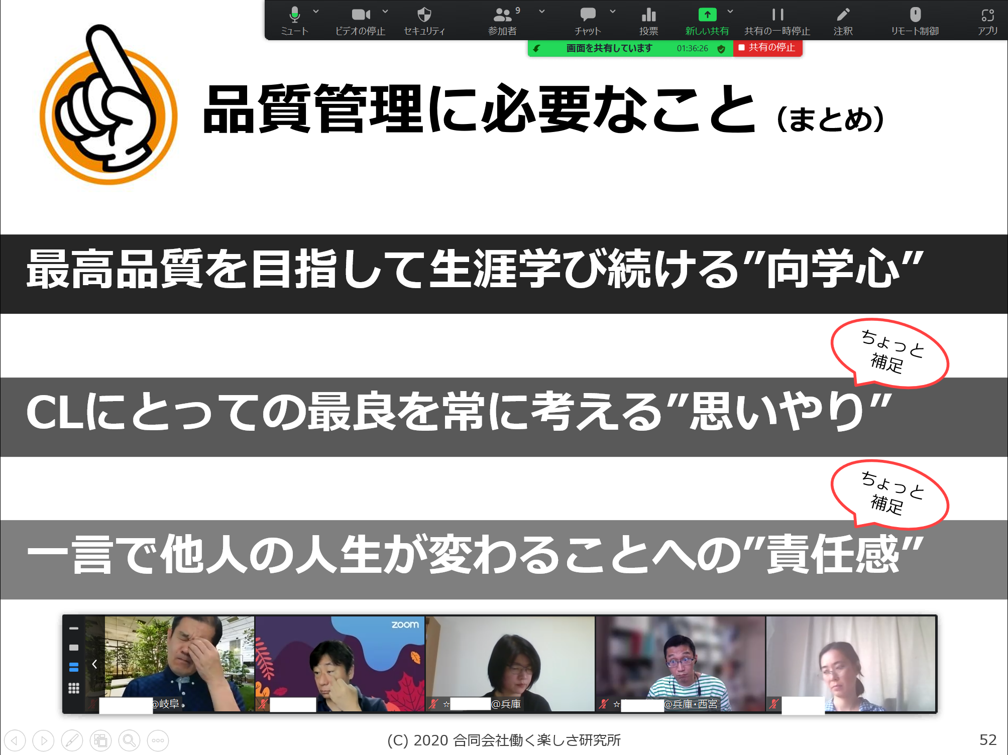 その次にやることは、ダメ出しではなく、その品質管理をする場を温かく・安心できる場として