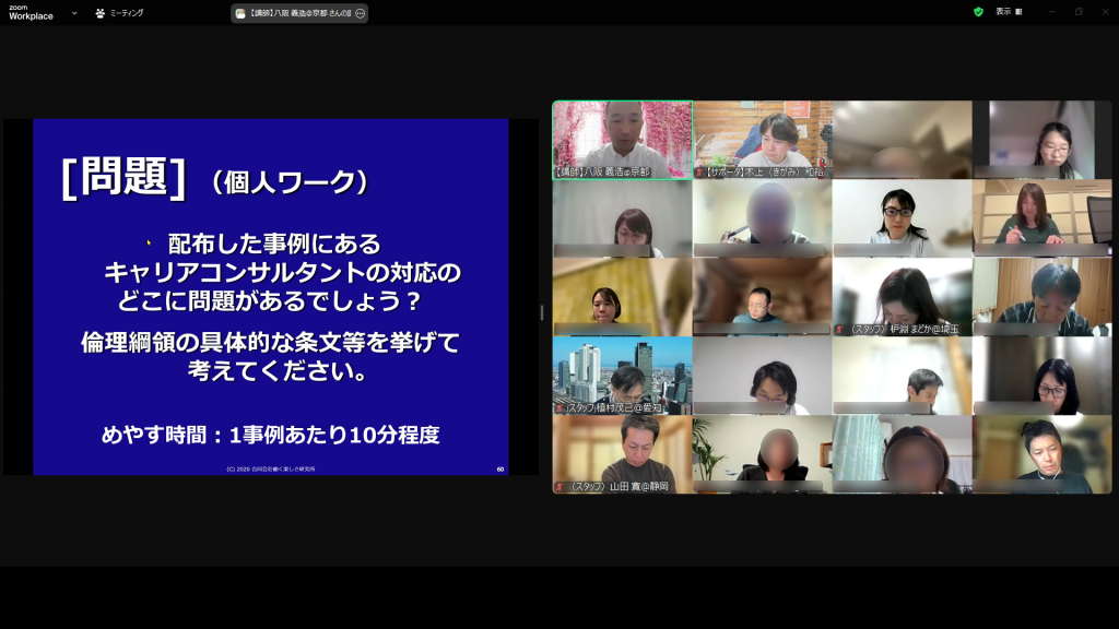 働く楽しさ研究所の更新講習の中では、初心者マークが付いている講習ですが、講義の内容が進むに従って、まるでキャリアコンサルタント技能士1級の試験に向けた授業を受けているような気持ちになりました。