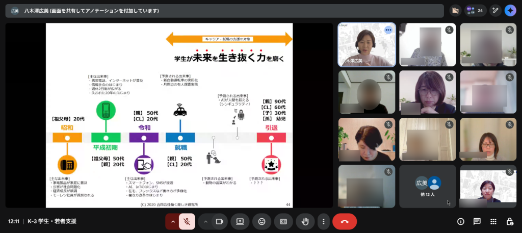 講師の熱意もヒートアップし、画面共有をすることを忘れみなさまにご迷惑をおかけした面もありました。