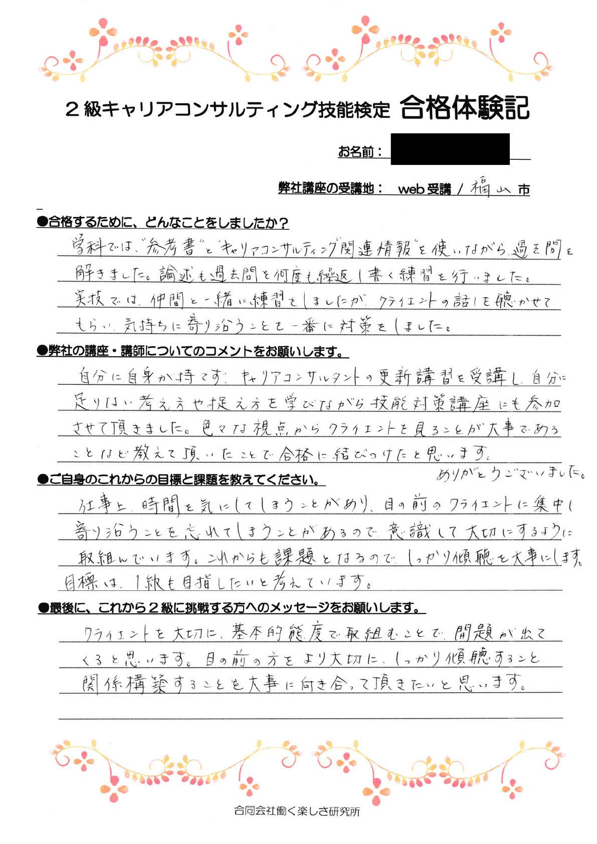 「CLを大切に、基本的態度で取り組むことで問題が出てくると思います。目の前の方をより大切に、しっかりと傾聴すること・関係構築することを大事に向き合っていただきたいと思います。」