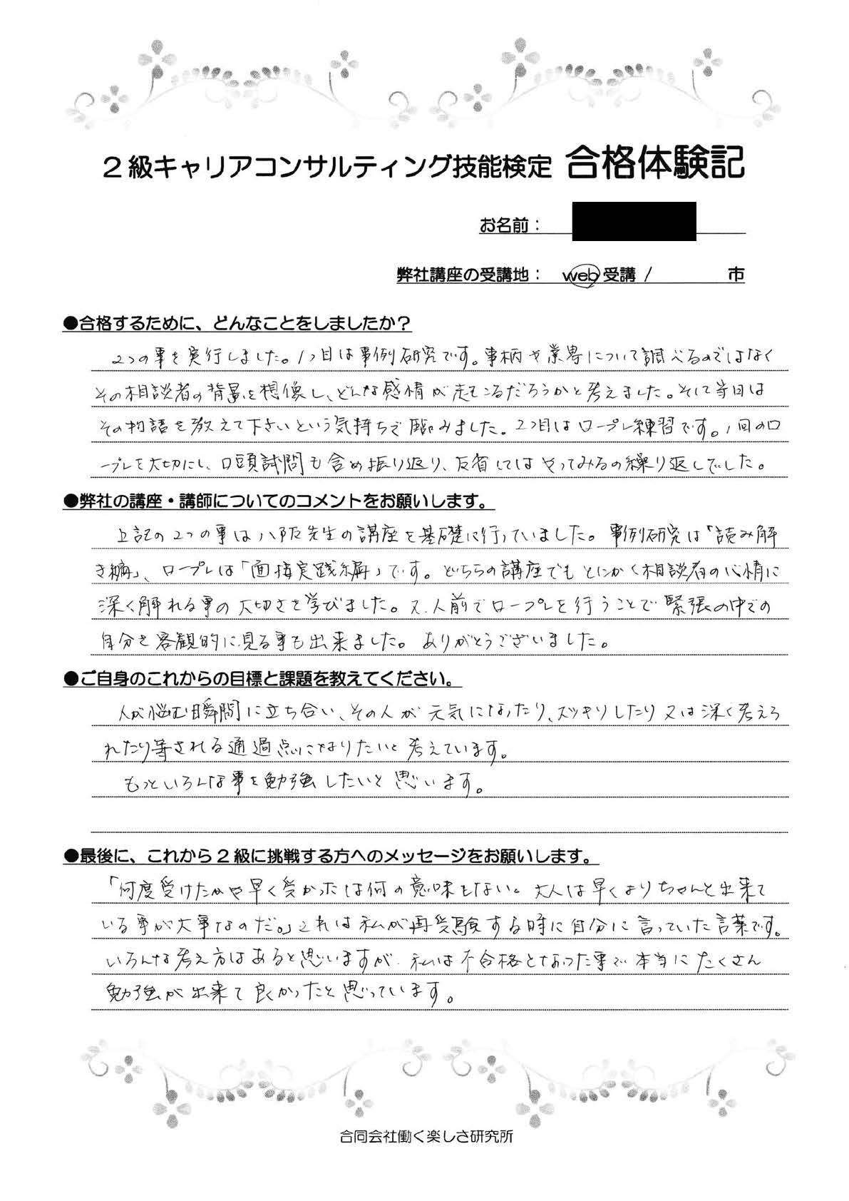 ブログ 2023.10.09 2023.10.31 合格体験記“早くよりちゃんと”できることが大事、と言い聞かせて受検しました。 執筆者 | 合同会社働く楽しさ研究所 富山県・第30回合格 「『何度受けたかや早く受かったかは何の意味もない。大人は”早くよりちゃんと”できていることが大事なのだ。』これは私が再受検するときに自分に行っていた言葉です。いろんな考え方はあるかと思いますが、私は不合格となったことで本当にたくさん勉強ができて良かったと思っています。」 2級CC技能検定対策講座のご案内ページはこちら 一覧へ戻る