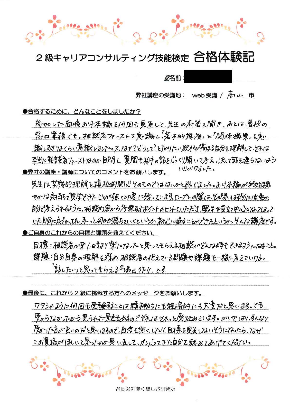 「私のように何回も受検することは精神的にも経済的にも大変だと思います。でも、受からなかったから見られた景色もあるので、それはそれと受け止めています。が、やはりすんなり受かった方が良いのだと思いますので、自信を無くしたり、目標を見失いそうになったら、なぜこの資格が欲しいと思ったのか思い返して、頑張ってきた自分を認めてあげてください。」